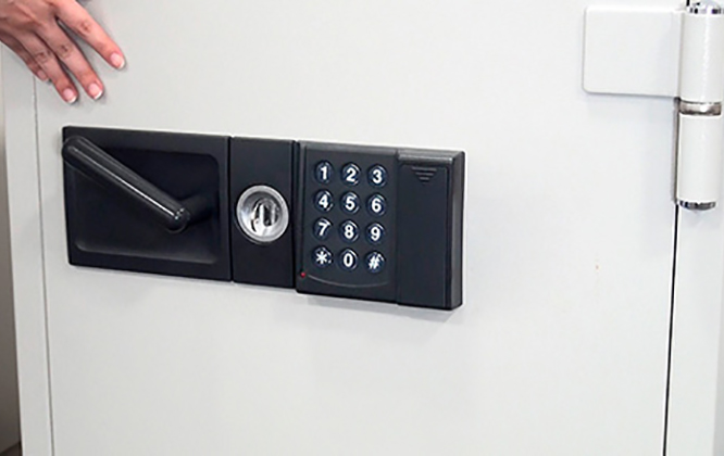 いつ、誰が解錠したか履歴情報を記憶し、パソコンで閲覧できます。万一のミスが起きた際は発生時刻と使用者を特定する目安にもなります。1~10桁までの異なる暗証番号を使用者別に5種類まで登録できます。間違った暗証番号を5回入力すると一定時間操作を受け付けなくする「イタズラ防止機能」も搭載しています。